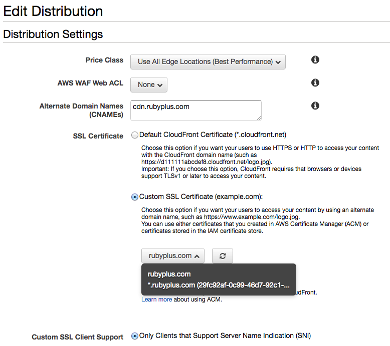 I am using Alpha SSL for SSL certificate for rubyplus.com. I did not have wildcard SSL certificate. The Chrome browser was freaking out with CORS related errors because I was accessing static resources using cloudfront.net domain. Did you know you can get free wildcard SSL from Amazon? As long as you are in virginia region, you can get a free SSL from Amazon. I am using Linode for deploying my Rails apps. The instructions will work for any VPS.